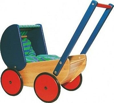 Wózek Głęboki Niebieski Z Zielonym Zabawki Zabawki Drewniane